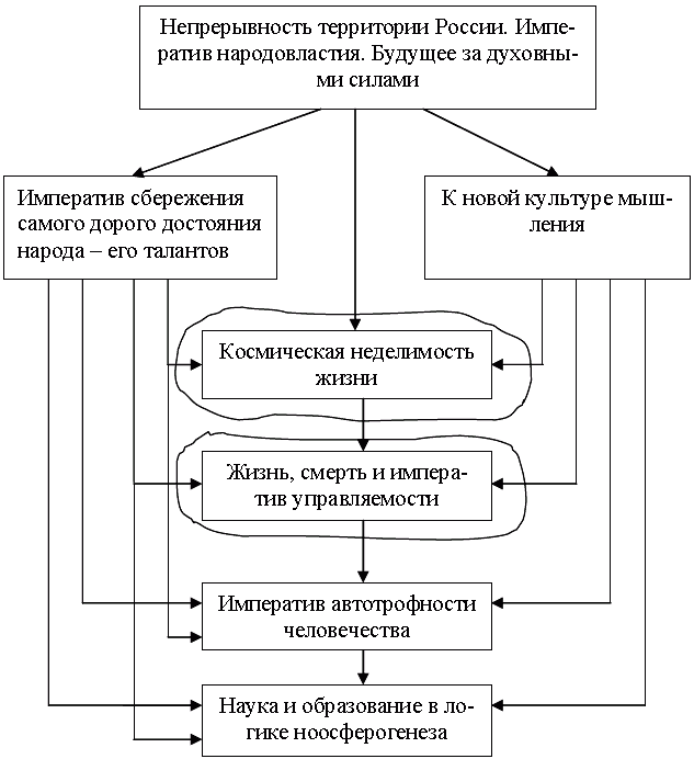 1. Становление ноосферной России требует приоритета мобилизации ее духовных сил, т.е. примата духовного воспроизводства над материальным, индивидуального подхода к уникальности каждого таланта, требует раскрытия «творческих производительных сил» России.