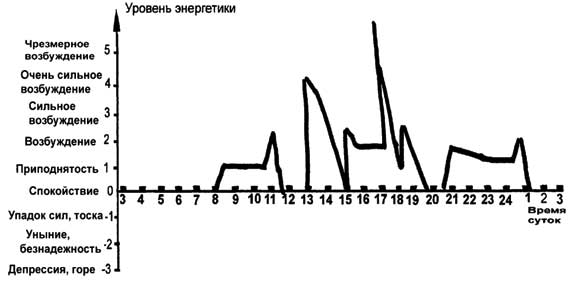 1. В течение ближайшего месяца попробуйте постоянно отслеживать, в каком энергетическом (эмоциональном) состоянии вы находитесь. Фиксируйте результаты своих самонаблюдений на графике, где по вертикальной оси отложены уровни вашей энергетики, а по горизонтальной – время суток.