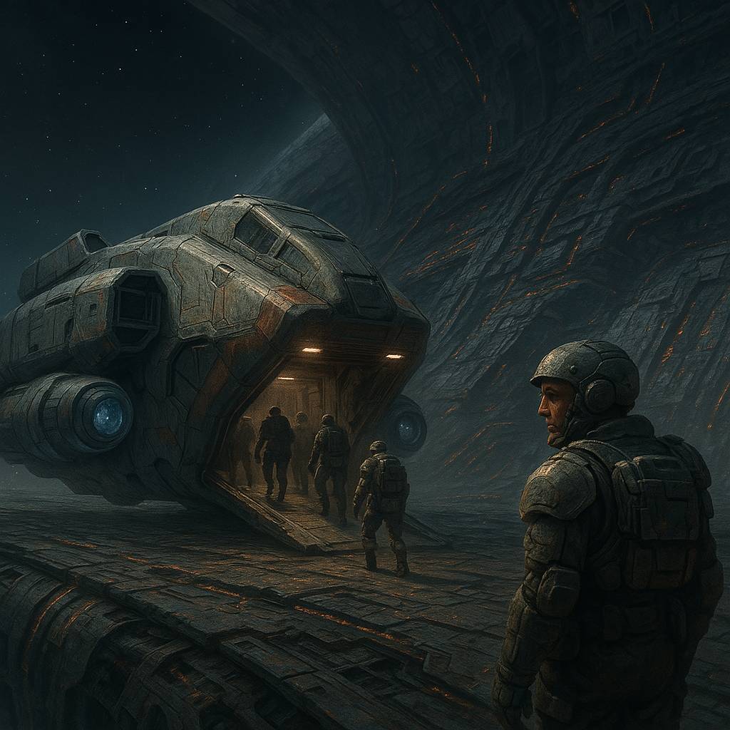 Наконец, шаттл сел на обшивку инопланетной станции. Десантники, измученные давлением и страхом, начали экстренную погрузку. Полковник Бернс последним ступил на борт, обернулся назад. Его взгляд, наполненный печалью и решимостью, задержался на станции, словно обещая, что эта потеря не останется без ответа.