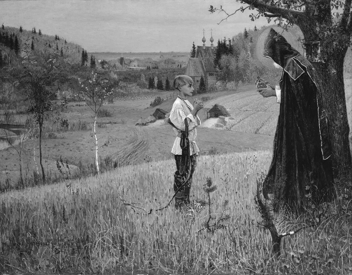 С конца 1880-х годов Нестеров окончательно утвердился в своей главной теме в живописи, ставшей его творческим кредо, – подлинной истории Руси, отраженной в жизни народа в допетровскую эпоху. Воплотилась она в рисунках «Встреча царя Алексея Михайловича с Марией Ильиничной Милославской», «Поход московского государя пешком на богомолье в XVII в.», «Свадебный поезд на Москве в XVII в.», опубликованных в журнале «Нива» за 1888 год. Жизнь на полотнах Нестерова проявляется не только в миру, но и в отшельничестве, в быте скитов и обителей: из-под пера живописца появились такие шедевры, как «Пустынник» (1888–1889), «Видение отроку Варфоломею» (1889–1890), «Юность преподобного Сергия» (1892–1897), «Труды преподобного Сергия» (1896–1897), «Сергий Радонежский благословляет Дмитрия Донского на битву с татарами» (1897). Эти работы Нестерова заслужили высокую оценку не только критиков, но и коллег, подчеркнувших присутствующую у мастера особую, самобытную и свойственную только ему черту – незримую гармонию человека и природы, будто живой, одухотворенной, отражающей душевное состояние персонажей.