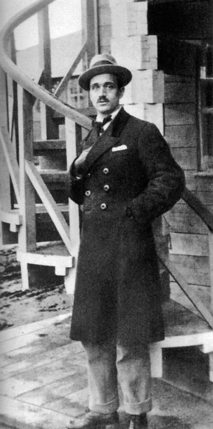 Константин Мельников у винтовой лестницы павильона «Махорка». Фото 1923 г.