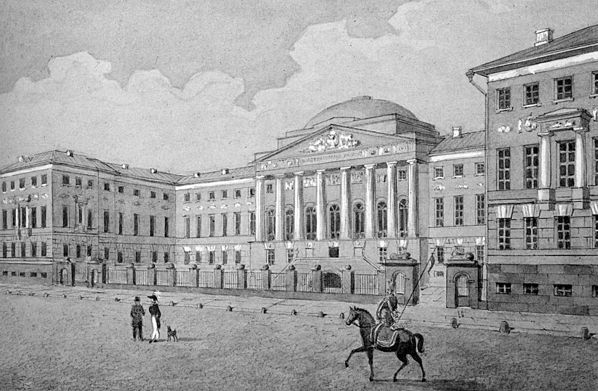Следующим после пансиона вполне привычным этапом жизни Лермонтова как представителя московской дворянской молодежи стал университет. Учеба в Московском университете вполне укладывалась в укоренившуюся уже схему, согласно которой отучившийся в Благородном пансионе молодой человек должен был плавно перейти на иную ступень образования, на этот раз высшую. Настало время и Михаилу Юрьевичу переступить порог университета, чтобы внести свою лепту в «торжество наук и искусств». 1 сентября 1830 года в Правлении Московского университета слушали донесение от ординарных профессоров Снегирева, Ивашковского, экстраординарного профессора Победоносцева, адъюнктов Погодина, Кацаурова, лекторов Кистера и Декампа: «По назначению господина ректора Университета мы испытывали Михайла Лермантова, сына капитана Юрия Лермантова, в языках и науках, требуемых от вступающих в Университет в звании студента, и нашли его способным к слушанию профессорских лекций в сем звании. О чем и имеем честь донести Правлению Университета».