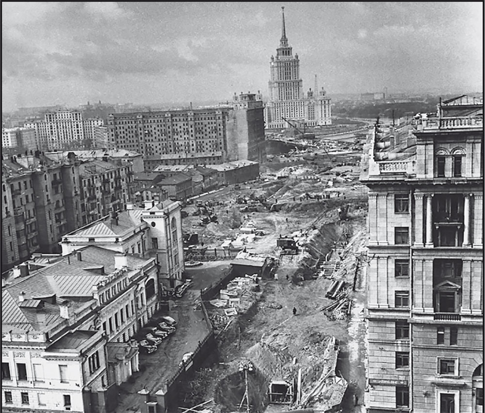 Александр Гурштейн, называя свой Новый Арбат «большой архитектурной нелепостью», вспоминает, как лицезрел здесь самого товарища Хрущева, прибывшего полюбоваться стройкой и подбодрить участников сноса: «Об охране культурно-исторического наследия города никто из властьимущих в то время не размышлял. Хрущев – в долгополом габардиновом пальто до пят – лично приезжал сюда подстегивать строителей. Я однажды видел его там. Он стоял среди пыли и строительного мусора, видимо, мечтая о коммунистической улице будущего. Получилось не очень, – также как и со строительством самого коммунизма». Это уж точно.