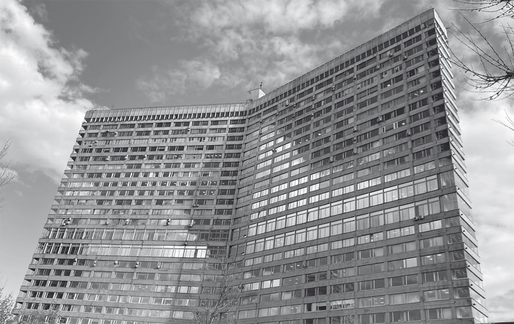 Опять надо объяснять – что это за СЭВ такой. Совет экономической взаимопомощи – объединение социалистических стран, получавших серьезную финансовую поддержку от Советского Союза почти 40 лет, с 1949 года. Главная контора СЭВ была построена в Москве и состоит из трех зданий, соединенных стилобатом. Самое высокое (31 этаж!) напоминает раскрытую книгу, только поуже, чем ее сестры-книжки на другой стороне Нового Арбата, и более стильную и стройную. Есть также конференц-зал и гостиница «Мир». Строительство велось в те же годы, с 1963 по 1970-й. К 1992 году СЭВ развалился, и в здании заседала московская мэрия. В кровавом октябре 1993 года сюда ворвались участники акций протеста, взяв здание штурмом. Затем восставшие направились к Верховному Совету РСФСР (ныне т. н. «Белый дом») и телецентру Останкино. Здание вошло в историю российского парламентаризма – после разгрома Верховного Совета и выборов в новый парламент в 1994 году здесь начала свою работу Государственная дума первого созыва. Ныне этот дом числится под № 36 по Новому Арбату.