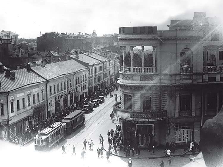 В 1917 году история дореволюционной „Праги“ закончилась. И дело даже не в том, что в ресторане в октябрьские дни устроили склад боеприпасов. Адвокаты и офицеры уступили место рабочим и солдатам, столовавшимся здесь в голодные годы Гражданской войны. Впрочем, было бы странным, если бы „Прага“ не помогла выжить и людям творческим, благодаря которым столики в ресторане никогда не пустовали. В бытовых записях Марины Цветаевой 1919–1920-х годов находим: „В детский сад – Старо-Конюшенным на Пречистенку (за усиленным), оттуда в Пражскую столовую (на карточку от сапожников), из Пражской (советской) к бывшему Генералову – не дают ли хлеб“. Попробуй-ка ныне разбери, о чем пишет Марина Ивановна, но мы попытаемся. „Усиленный“ – означает академический паек, который представителям московской творческой интеллигенции выдавали в ЦЕКУБУ – Центральной комиссии по улучшению быта ученых на Пречистенке („Здесь Цекубу, здесь леший бродит, русалка на пайке сидит“ – стишок тех времен). „Пражская столовая“ Моссельпрома и находилась в бывшем ресторане „Прага“. Бывший гастроном Генералова, где давали хлеб по карточкам, находился в доме страхового общества „Россия“ на Лубянской площади.