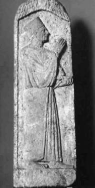 Стела Баалйатона, найденная в 1901 году к югу от Тира. Судя по головному убору, на стеле изображен финикийский священник
