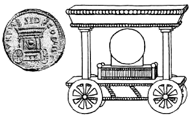 Священная повозка Астарты Сидонской. Изображение на медной монете, отчеканенной во время правления римского императора Элагабала в 219 – 220 гг. до н.э.