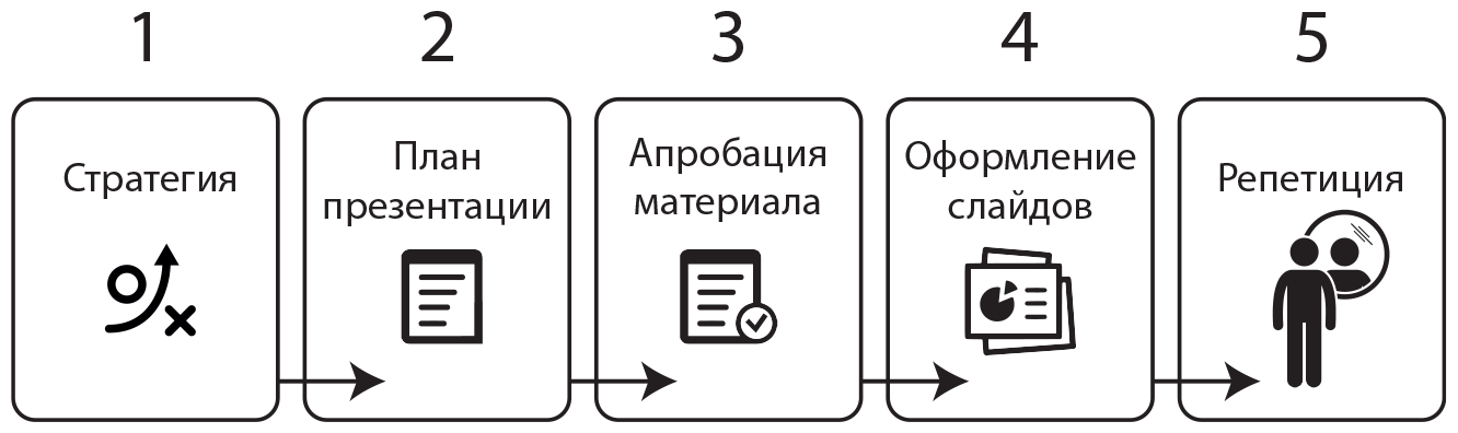 Надежность данного алгоритма я многократно проверял на практике и настоятельно рекомендую скрупулезно проходить все шаги. Однажды я помогал двум спикерам подготовиться к пятнадцатиминутному выступлению на международной конференции. Сроки поджимали, и приходилось работать быстро. Но даже в этих экстремальных обстоятельствах весь процесс – от продумывания структуры выступления до подготовки последнего слайда – занял у нас около 16 часов (репетировали они уже сами, в аэропорту и самолете. Да, 16 часов ради 15 минут – и это абсолютно нормально для хорошего выступления!