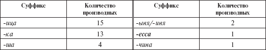 [Закрыть], танцовщица, певица, переводчица. В этих производных суффикс – иц(а) выполняет номинативную функцию, служа для производства слов, немаркированных в стилистическом и прагматическом отношениях; словообразовательная цепочка «производящее слово мужского рода → производное слово женского рода» выстраивается без труда.
