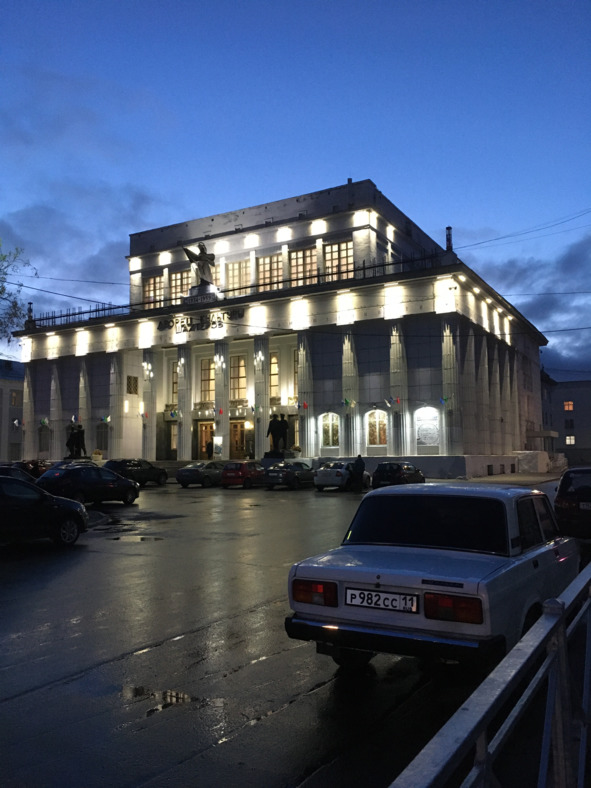 Центральным местом Воркуты является мощное здание сталинской эпохи – Дворец культуры шахтеров. Своей громадиной и обилием подсветки в темное время суток, всем своим видом оно символизирует, что Воркута все еще живет вопреки всему.
