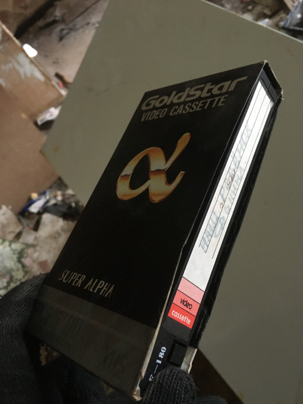 Но еще более интересной находкой здесь была видеокассета на полу. Судя по наклейке, на ней были записаны какие-то записи семейного видеоархива 1995 года.