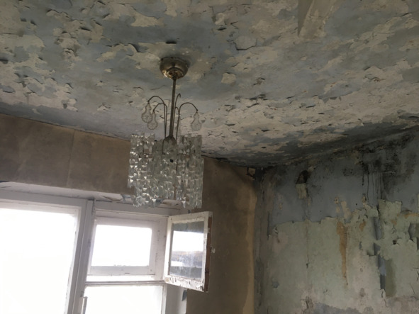 В одной из квартир слышался ритмичный громкий стук. Стало даже не по себе. Когда мы проходили дальше по коридору, стук усиливался. И в большой комнате мы увидели, как форточка силой ветра ударялась об оконный проем, а остатки полиэтилена на окнах шуршали фоном.