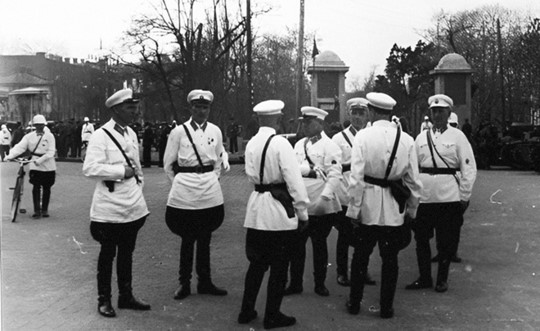 Так что в целом картинка предстает почти идиллической. Особенно если вспомнить, что в те времена постовые были одеты в ангельски белую форму (но, конечно, в темные брюки и сапоги, с темными ремнями и кобурой).