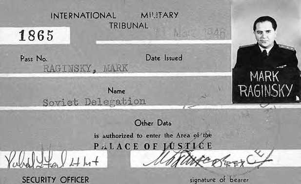 Пропуск (лицевая сторона) М. Ю. Рагинского на заседания Международного военного трибунала