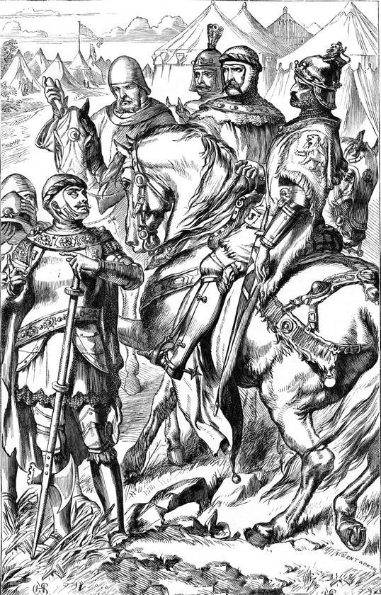 – Королевская конница тоже только-только с дороги, она точно так же измучена и ослаблена походом, устала, – упрямо говорит он. – А наши бойцы уже достаточно отдохнули.