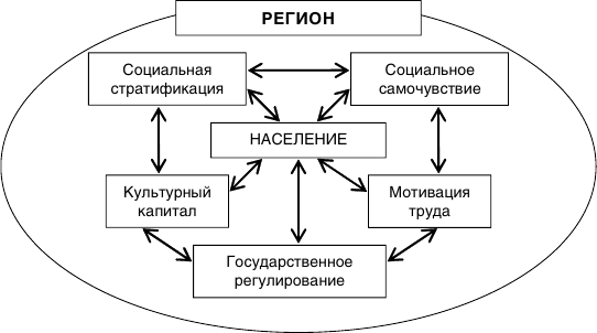 Население является главным действующим лицом региона. От его культурного капитала, социального положения и самочувствия зависит трудовая и общественная деятельность в рамках региона, в том числе и государственное регулирование, которое оказывает непосредственное влияние на все виды деятельности и положение жителей. Одни проявления и функции населения проистекают из других, находясь в тесной взаимосвязи; следовательно, вырисовывается социокультурное изображение региона.