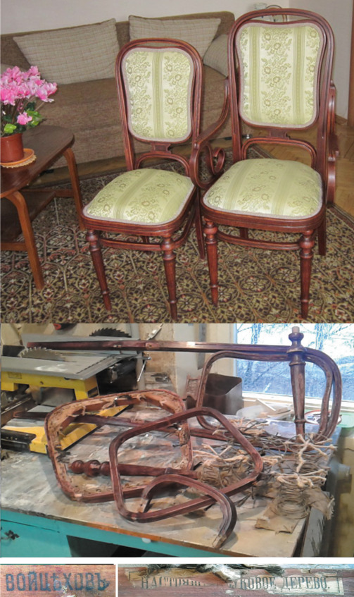 А. Абрамов Реставрация польских стульев фабрики Войцехов. После участия в нашествии Наполеона Польша вошла в состав Российской империи, поэтому надписи на русском языке.