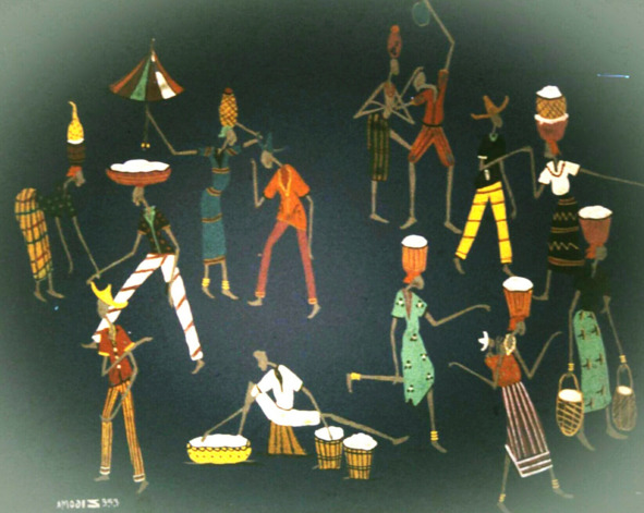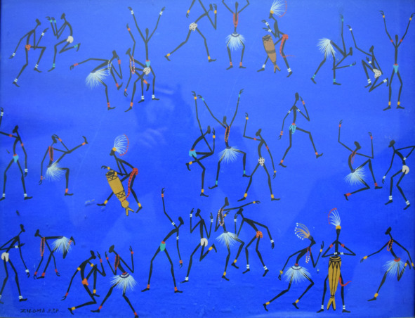 Африканские штуки, среди них колки для ткацкого станка, декоративный фон и рама работы А. Абрамова.