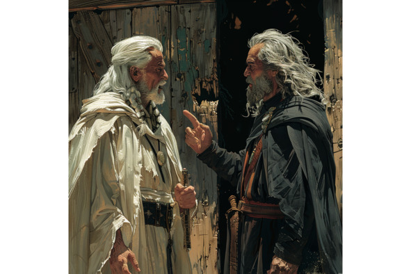 Чужая, но уверенная рука откинула тяжёлую завесу. Перед вольхом предстал седой длинноволосый мужчина в сером балахоне. Грудь его украшал мрачный амулет – ворон с головой волка.