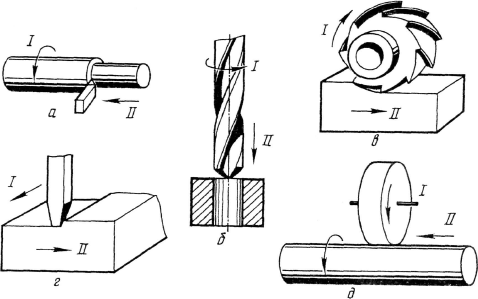 I – главное движение; II – движение подачи