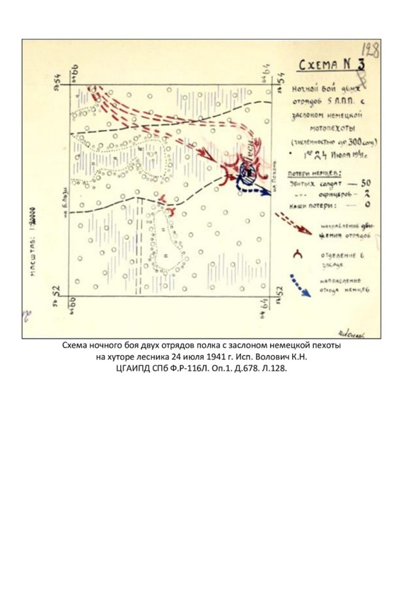 Двум батальонам полка под общим командованием командира 2-го батальона старшего лейтенанта А. И. Федотова 23 июля была поставлена задача: внезапным налётом уничтожить находившийся на хуторе лесника немецкий заслон. Повторно высланная разведка доложила, что на хуторе расположились до 300 немцев, с наступлением темноты немцы располагали сторожевые посты возле построек хутора, разъездов по дороге Большие Льзи – Похонь не высылали.