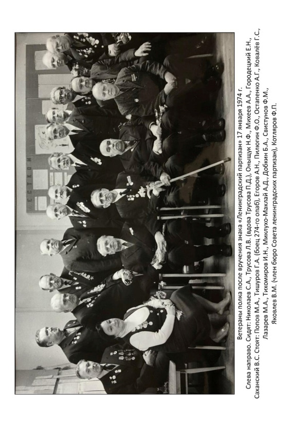 При содействии Ленинградского Совета ветеранов партизанского движения было организовано представление в Верховный Совет РСФСР к наградам за партизанскую деятельность тех бойцов, которые не были отмечены наградами ранее. В результате Указом Президиума Верховного Совета РСФСР в феврале 1971 г. медалями «За отвагу» были награждены бывшие партизаны 5-го Ленинградского партизанского полка: А. Н. Егоров, А. П. Захаров, Н. В. Иванов, С. Г. Карелин, М. А. Лазарев, Н. Ф. Оныщук, Ф. О. Пилюгин, Ф. М. Свистунов, Н. И. Щекин; медалью «За боевые заслуги»: Г. С. Ковалёв, Ф. П. Котляров, С. А. Николаев и И. М. Тихомиров8080