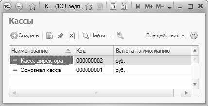 Все наличные денежные средства предприятия в обязательном порядке проводятся через кассу. На предприятии может использоваться несколько касс: для разных валют, для разных торговых точек и т. д. Как минимум на любом предприятии должна быть хотя бы одна касса, являющаяся местом фактического хранения и движения наличных денежных средств предприятия. Но если компания работает с разными валютами, то для каждой из них необходимо завести отдельную кассу. Если же в состав компании входит несколько организаций, то в каждой из них должны функционировать собственные кассы.