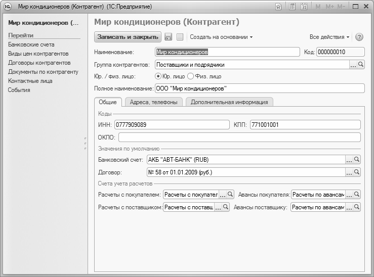 Рис. 2.25. Ввод и редактирование сведений о контрагенте