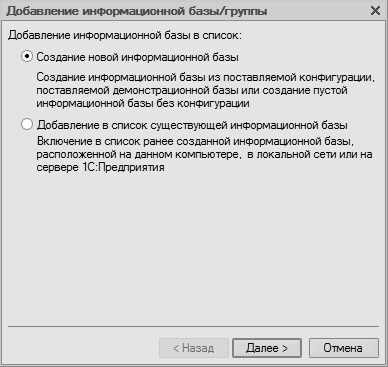 При создании новой информационной базы на экране отобразится окно, которое показано на рис. 1.3.