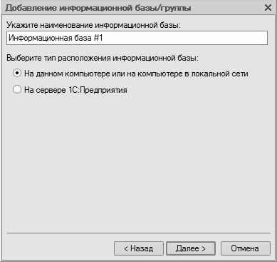 Рис. 1.4. Ввод имени и типа расположения информационной базы
