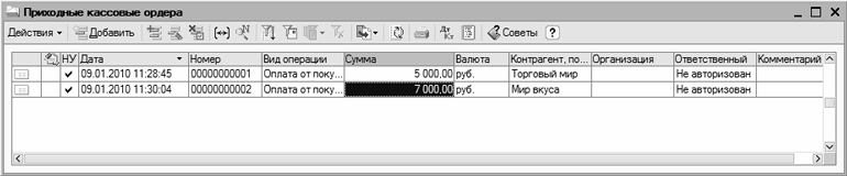 Рис. 1.14. Пример окна списка (приходные кассовые ордера)