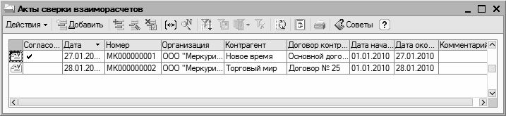 Рис. 6.20. Список актов сверки взаиморасчетов