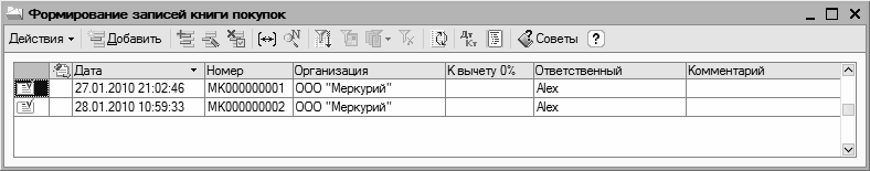 Рис. 6.25. Список документов Формирование записей книги покупок