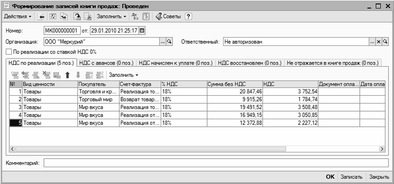 Рис. 7.14. Формирование записей книги продаж