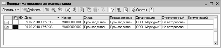 Рис. 9.19. Документы на возврат ценностей из эксплуатации