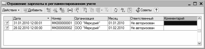 Рис. 12.10. Список документов по отражению зарплаты в учете
