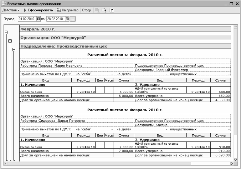 Рис. 12.14. Расчетные листки