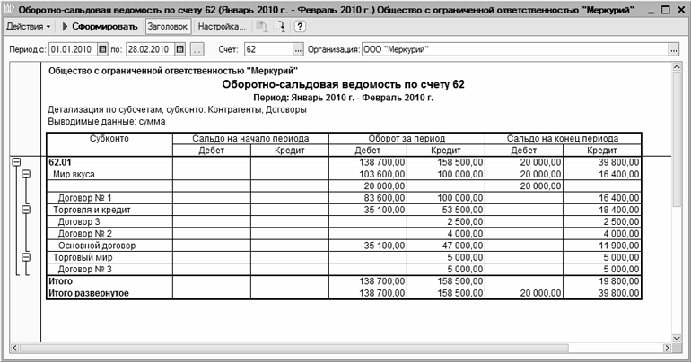 Рис. 13.7. ОСВ по счету 62 с развернутым сальдо