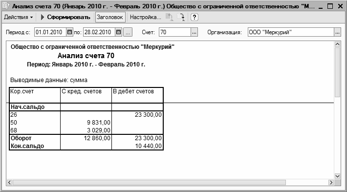 Рис. 13.11. Анализ счета 70