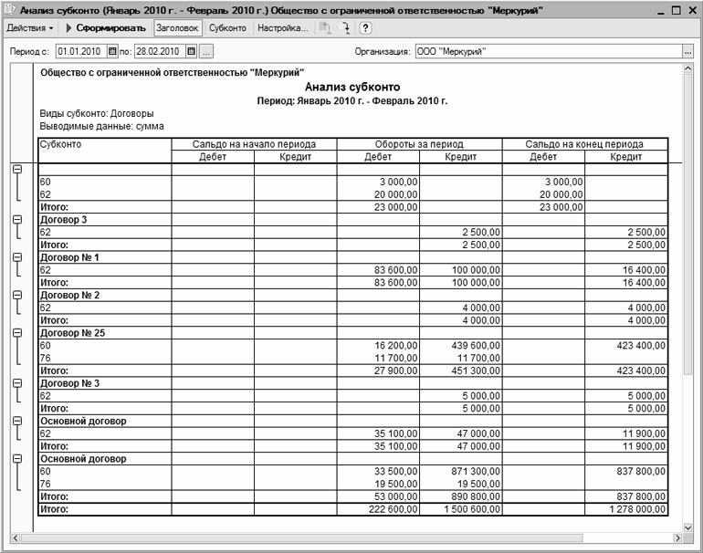 Рис. 13.13. Анализ субконто Договоры