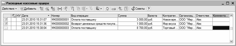 Рис. 4.10. Ввод и редактирование расходного кассового ордера