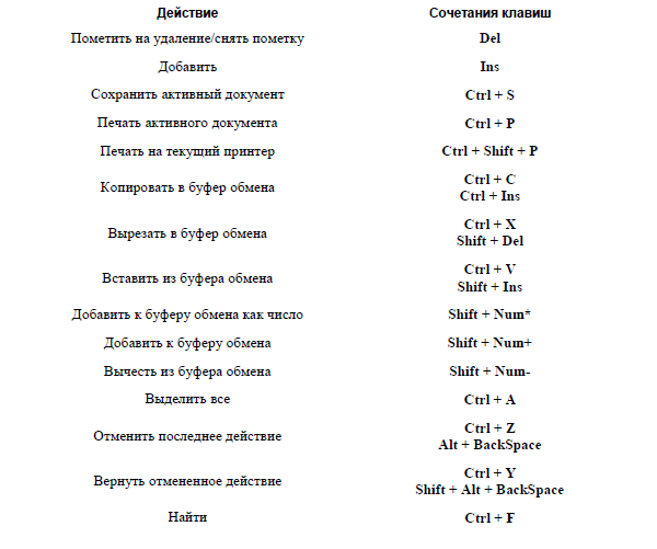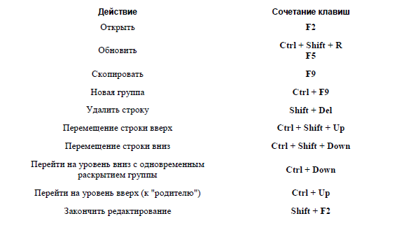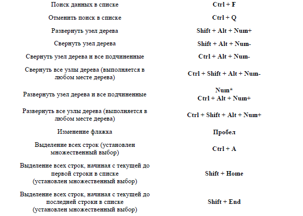 «Горячие клавиши» для работы в интерфейсах списка и с иерархическими списками