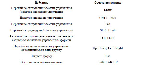 Сочетания клавиш, которые можно использовать в программе («горячие клавиши»)