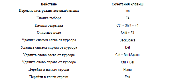 «Горячие клавиши» для работы с полями ввода в окнах редактирования
