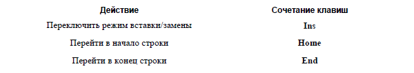 «Горячие клавиши» для работы в окне редактирования