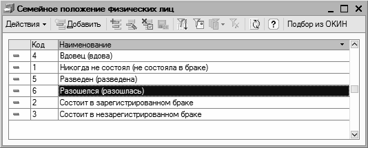 Рис. 3.34. Справочник семейных положений физических лиц