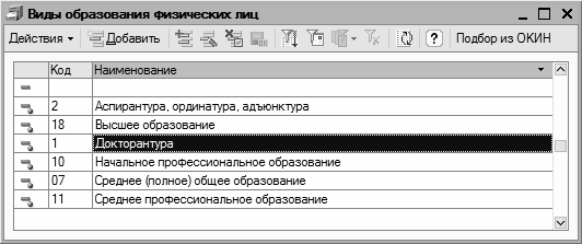 Рис. 3.38. Справочник видов образования