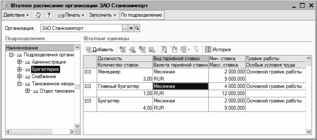 Рис. 4.1. Работа со штатным расписанием