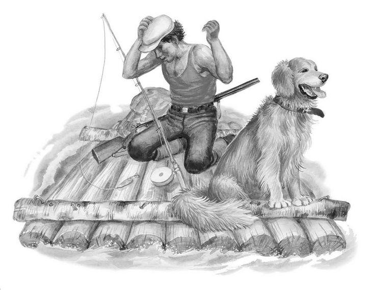 На Усьве он сколотил плотик, положил рюкзак, посадил рядом с рюкзаком Фишку, ружьё пристроил возле своих ног и поплыл.