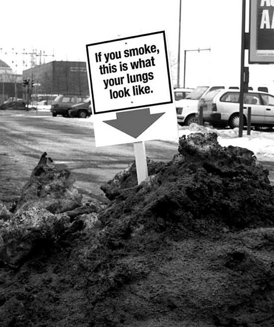 Рис. 11. Придорожная куча снега – «красочный» элемент антитабачной рекламы